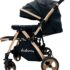 - Modern and Stylish Design: Lightweight yet sturdy aluminum frame with elegant leather accents and a large adjustable canopy to protect your child from sun and dust.