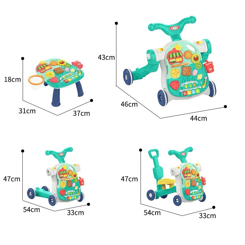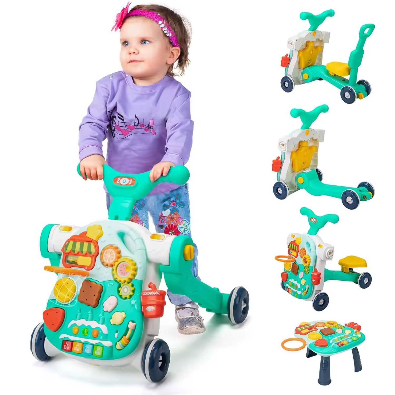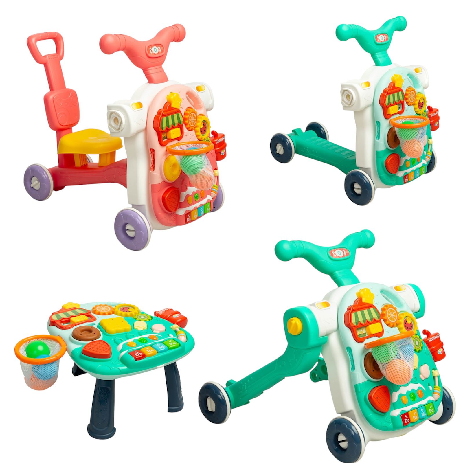The multifunctional 5-in-1 walker is a modern product that will not let your child get bored. The multitude of possibilities of use, colorful elements and a music panel will allow the baby to play for hours. To provide the child with the most experience, the toy can be folded in 5 different ways: a walker, a scooter, a rocking vehicle, a ride-on and a table. The toy is suitable for children over 12 months of age.