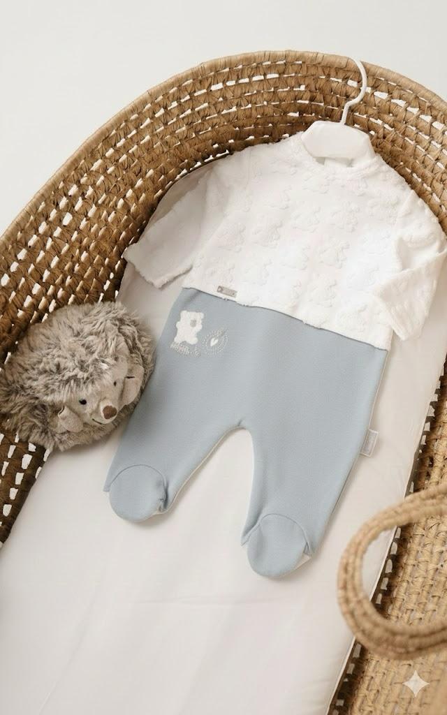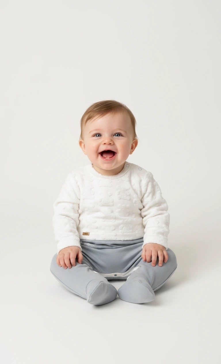 This premium one-piece winter romper is expertly designed to provide the coordinated look of a full outfit in a single, convenient garment. Crafted from heavy, ultra-soft plush fleece, it offers exceptional warmth and a gentle touch for your baby’s comfort throughout the day and night. The romper features a beautifully textured white upper body with elegant woodland embroidery, seamlessly connected to grey trousers with integrated footies for total protection against the cold. With its easy-access snap buttons and durable, high-quality fabric, this sophisticated one-piece is the perfect all-in-one solution for a cozy and stylish winter.