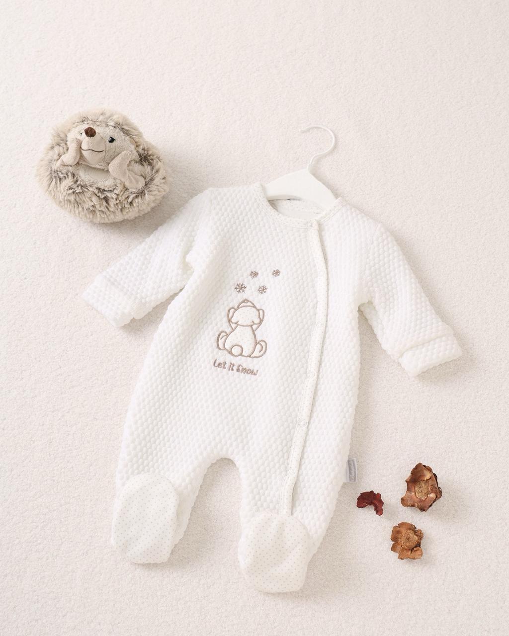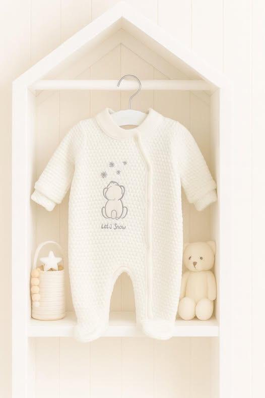 The adorable bear design with snow details adds a sweet winter touch, while the calm neutral color makes it suitable for outings, sleep, and everyday wear. Gentle on delicate baby skin and designed to allow free movement, this romper combines warmth, comfort, and cuteness in one essential outfit.