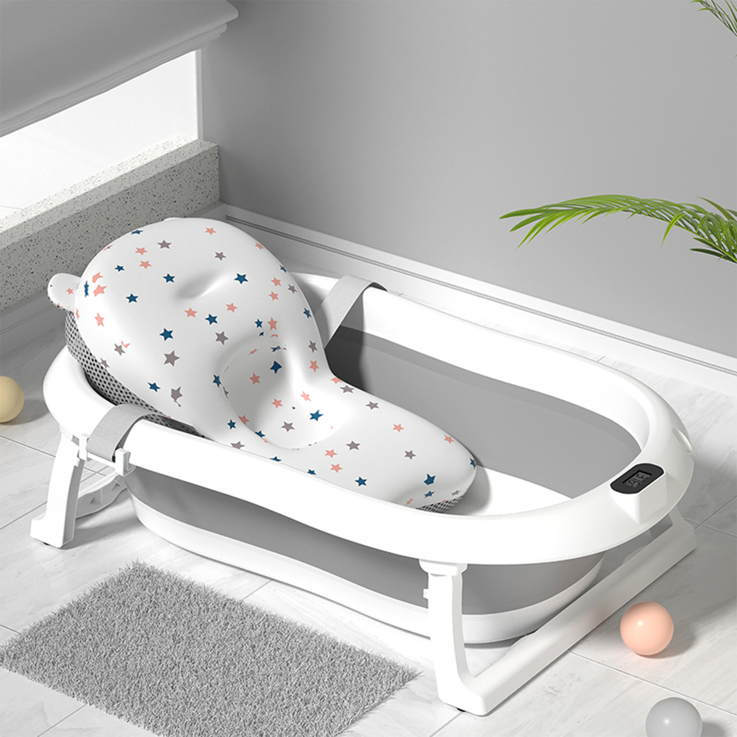 - Built-in Thermometer – Helps you monitor and adjust water temperature accurately for a perfectly safe bath.