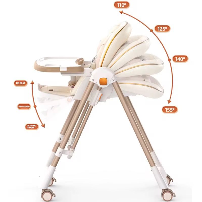 - 3-in-1 Multi-Position Seat: Use as a high chair, chaise lounge, or flat baby bed.