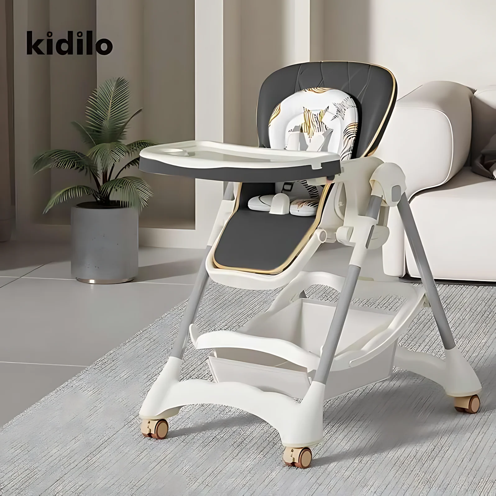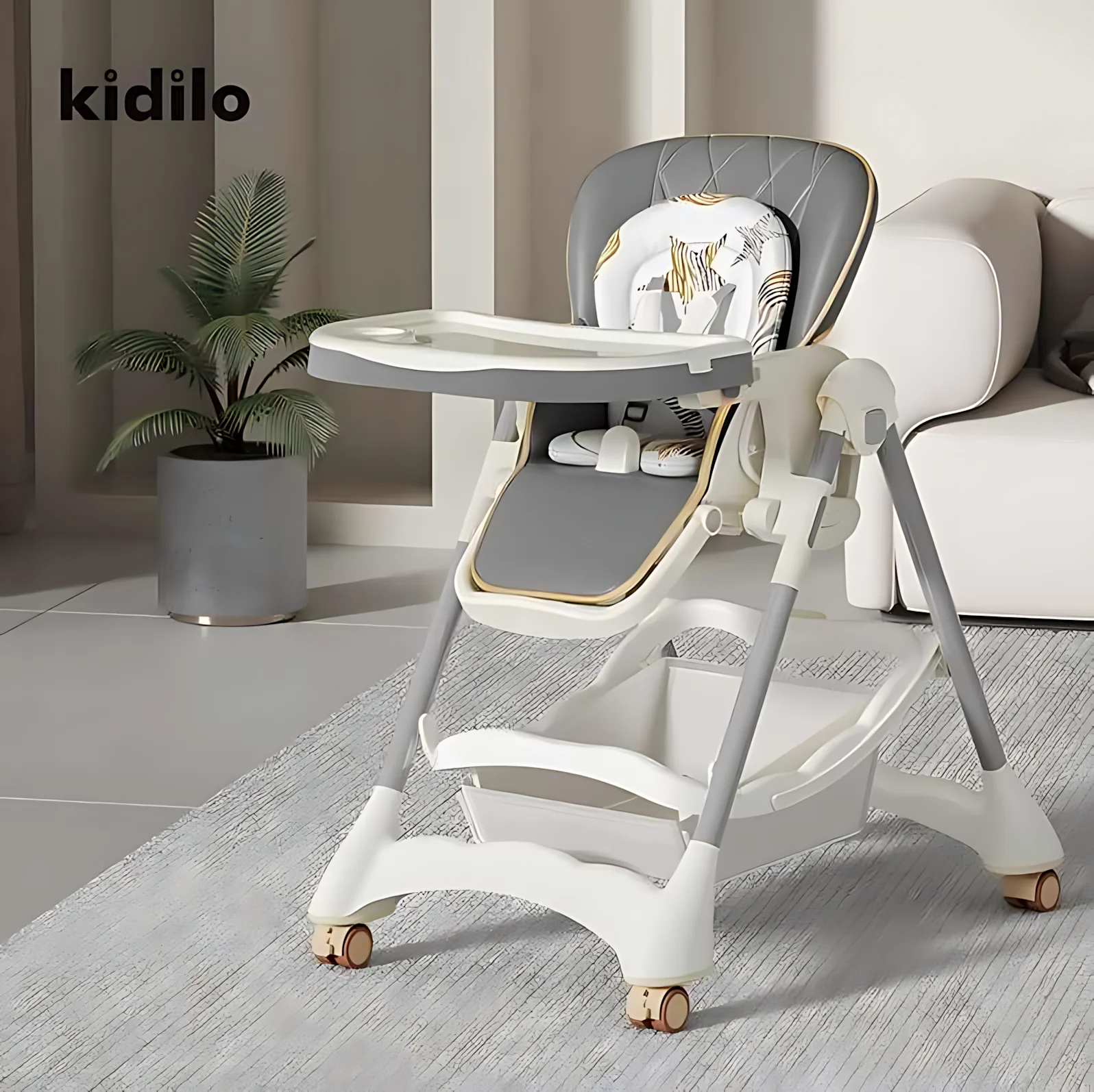 The Kidilo Baby Chair 1-A1 is a versatile and high-quality baby dining chair made from sturdy metal, offering exceptional safety, comfort, and functionality. Designed to grow with your child from newborn up to 4 years, it transitions seamlessly between a high chair, lounge chair, and baby bed. With a foldable, compact design and thoughtful features, it’s ideal for both everyday use and travel.