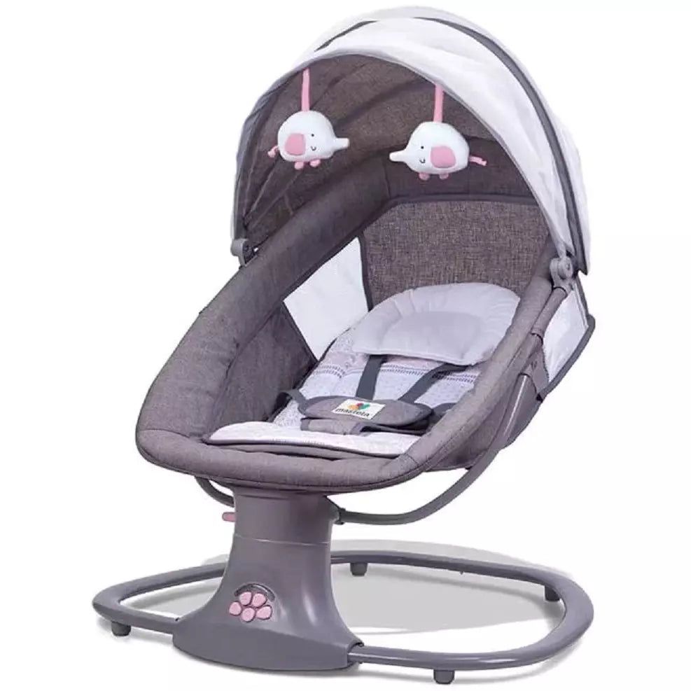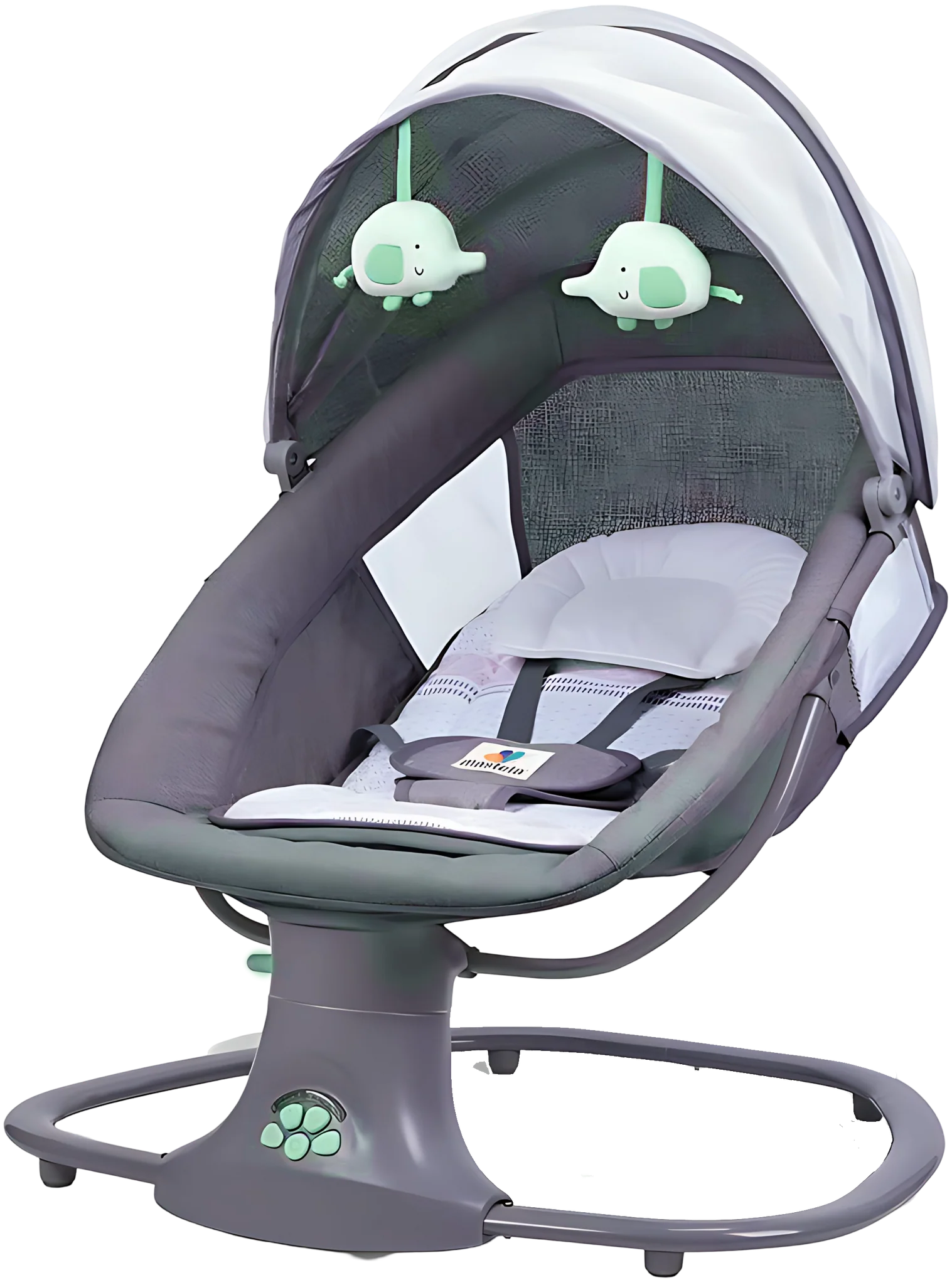 Side to side movement, 5 ideal angles for your growing child. Canopy with integrated mosquito net for shade and serenity. Full recline positions that are perfect for playing, exploring, napping, feeding. 3 timer settings. 15, 20, 45 minutes. 15 melodies with volume control.