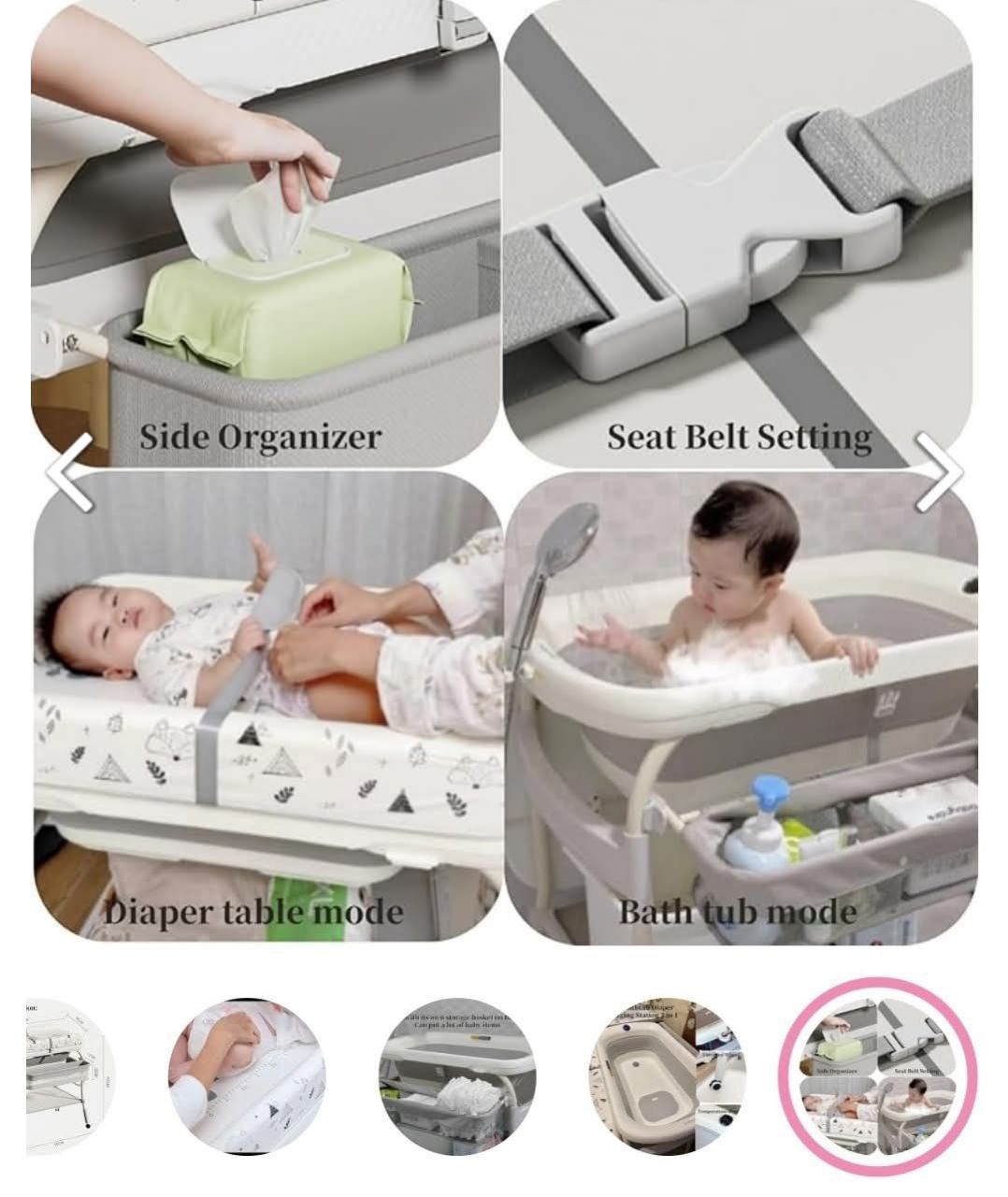 • Spacious multi-layer storage for diapers, wipes, and baby essentials