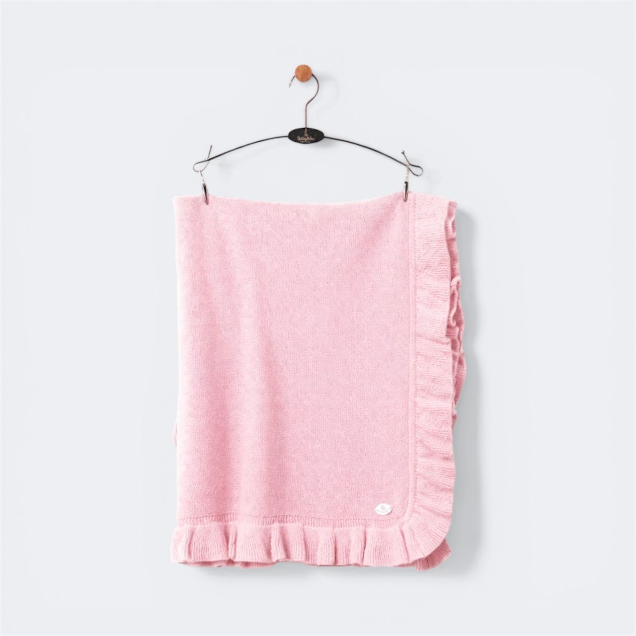 A beautifully designed soft pink knitted baby blanket that provides warmth, comfort, and elegance for your little one. Made from gentle, breathable fabric that is soft on delicate baby skin. The charming ruffle edge adds a sweet and stylish touch, making it perfect for daily use, stroller rides, nap time, or as a lovely baby gift.
