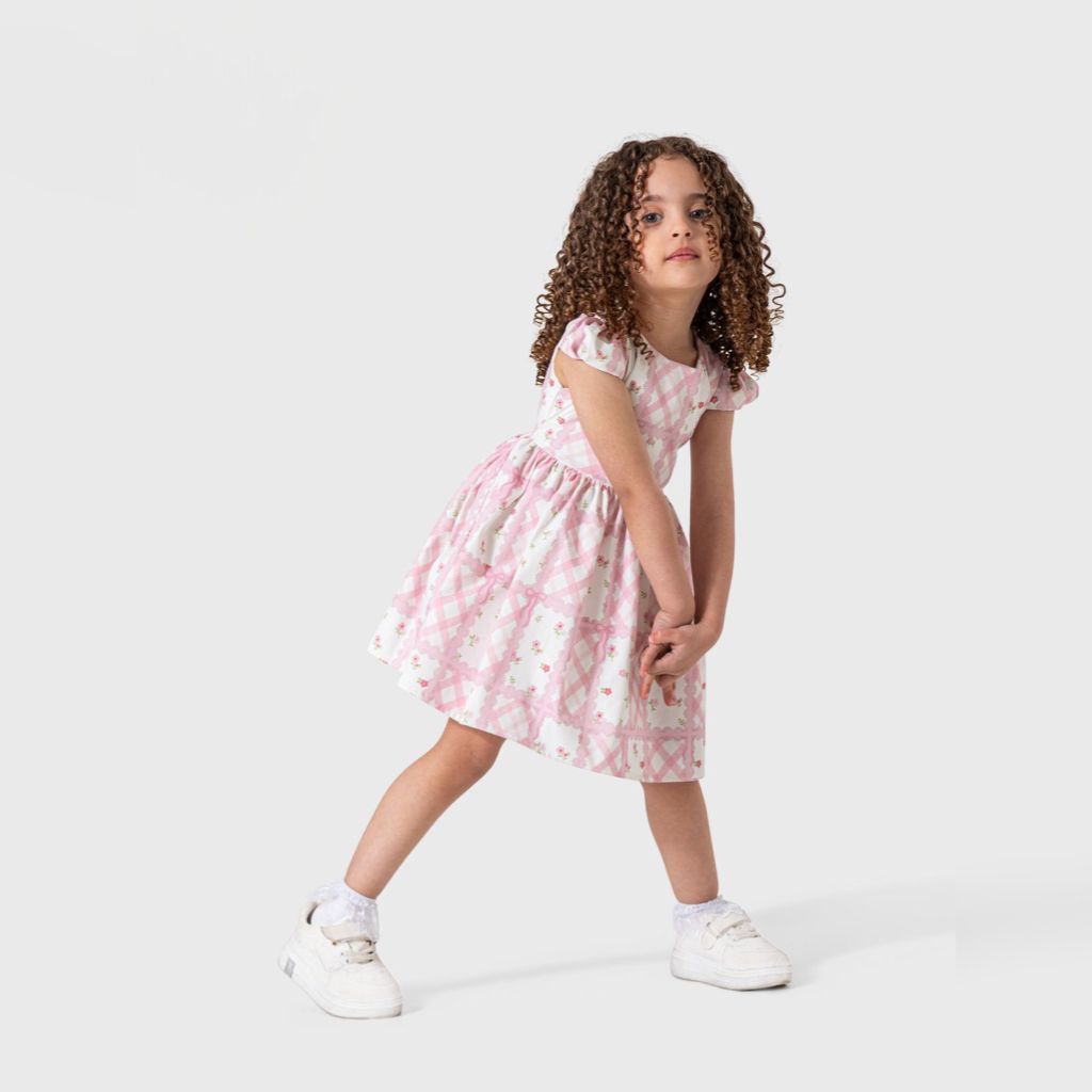 Elegant girls’ dress with a casual pink and white checkered print, made from soft cotton fabric for ultimate comfort and style. Features a flared, playful design that adds a sweet feminine touch — perfect for everyday wear or family outings.